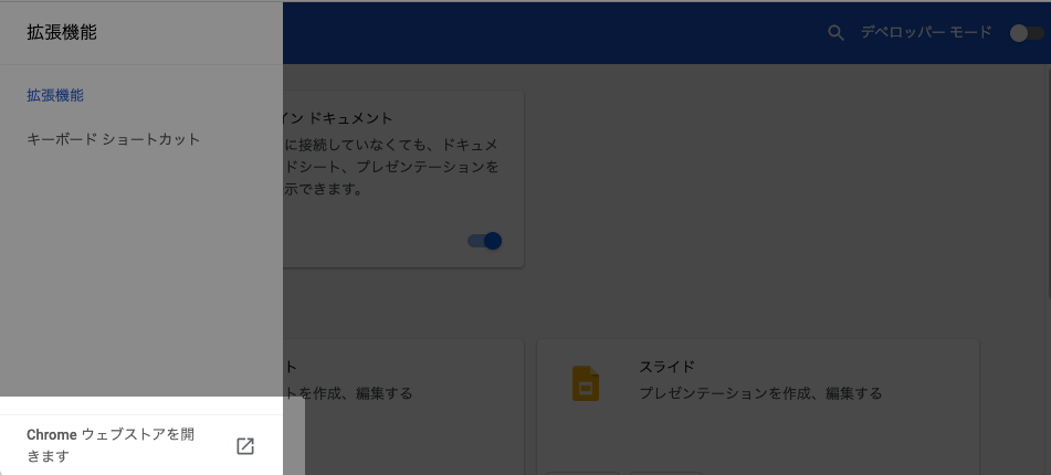 これでchromeの拡張機能のストアへたどり着けました。
