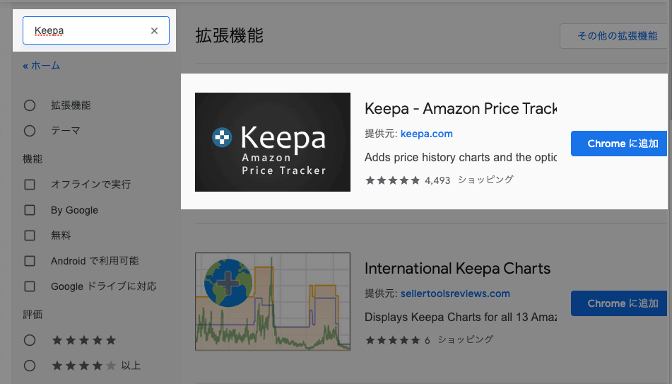 【手順2】ストアでKeepaを検索