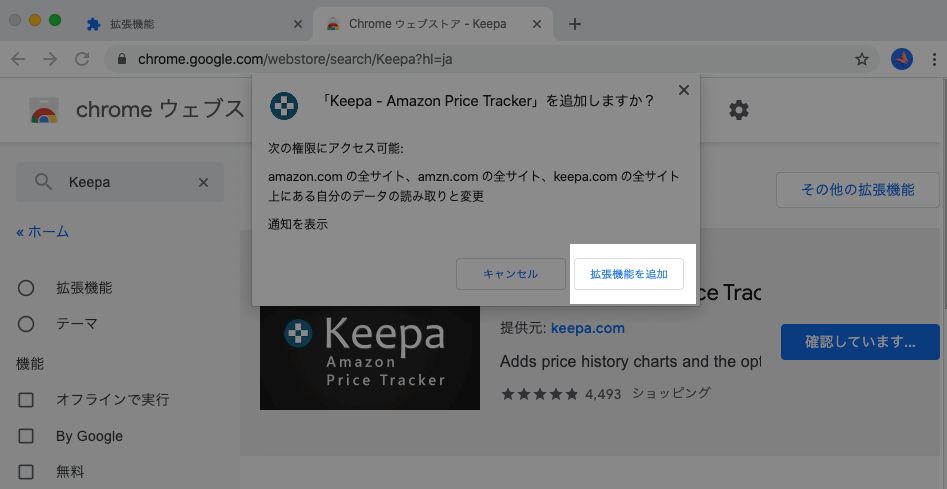 確認画面が出てくる場合は[拡張機能を追加]を押下します。