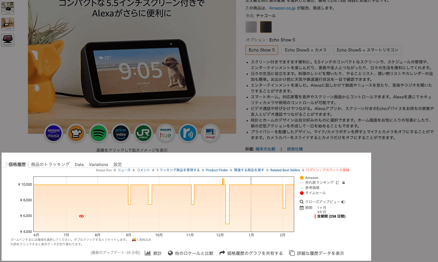 Keepaを導入すると、Amazonの商品ページに価格推移グラフが表示されるようになります。