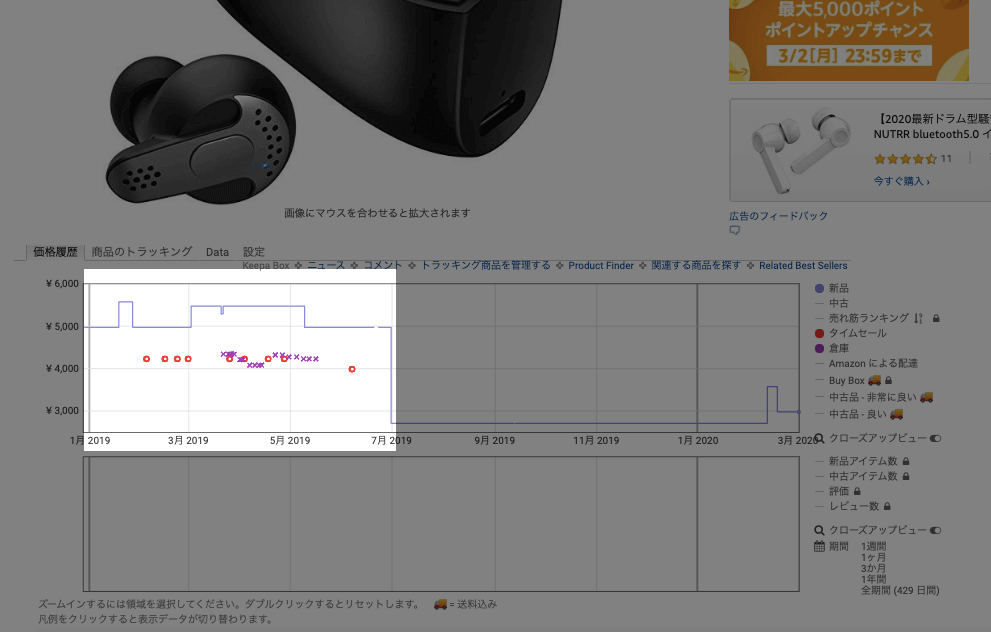 以下写真を見てもらえば分かる通り、頻度よくタイムセールが行われており、約1,000円値下げが行われていることが分かります。