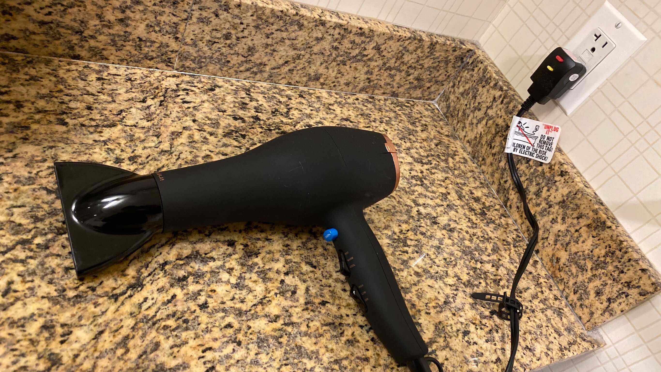 温風冷風の切替や強弱も選択できるドライヤーなので、日本からの持参が不要です。