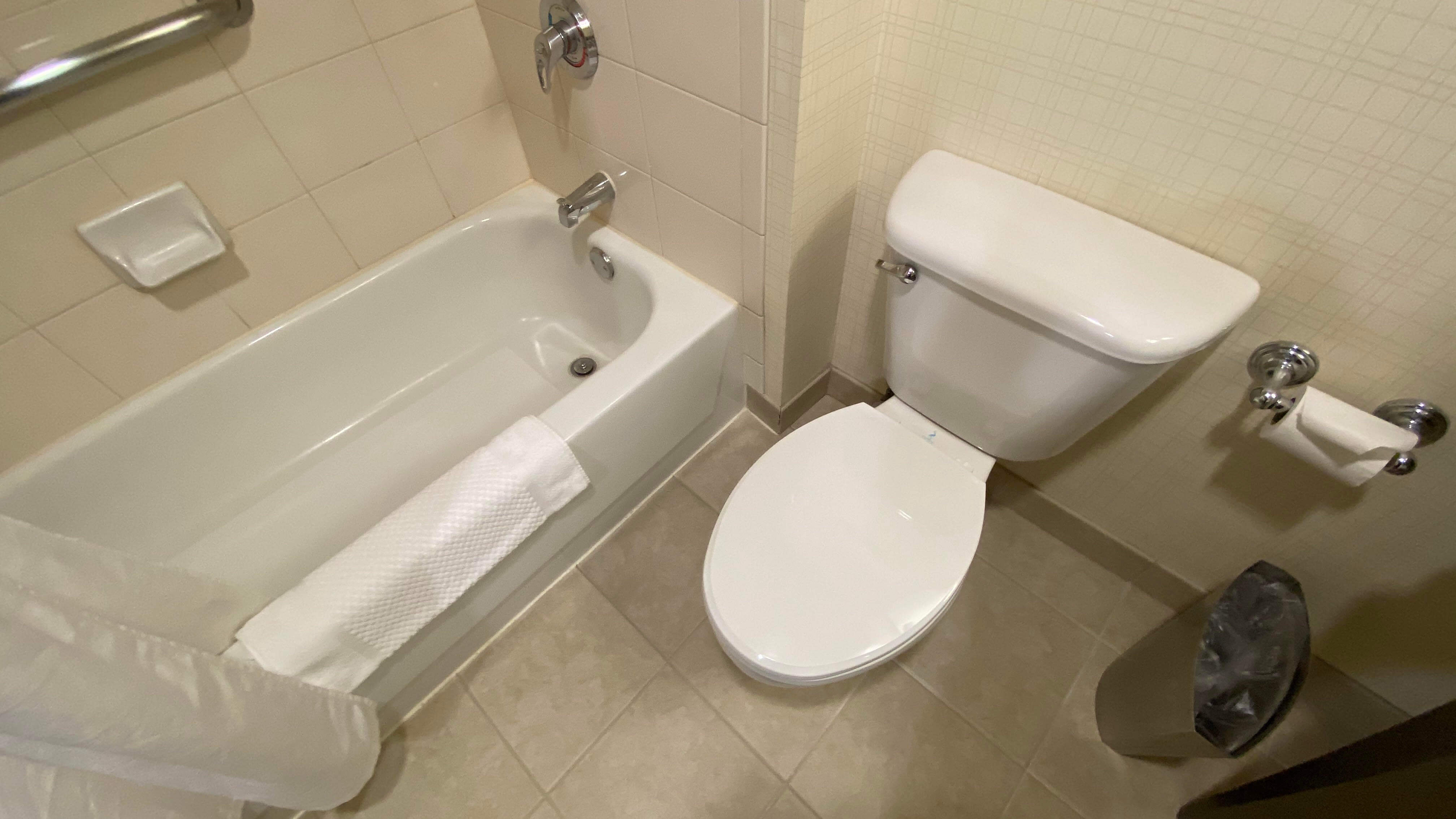 バスタブは比較的浅め(日本の3/2の深さぐらい)で、長さは168cmの私はすっぽり入るほど長い印象です。