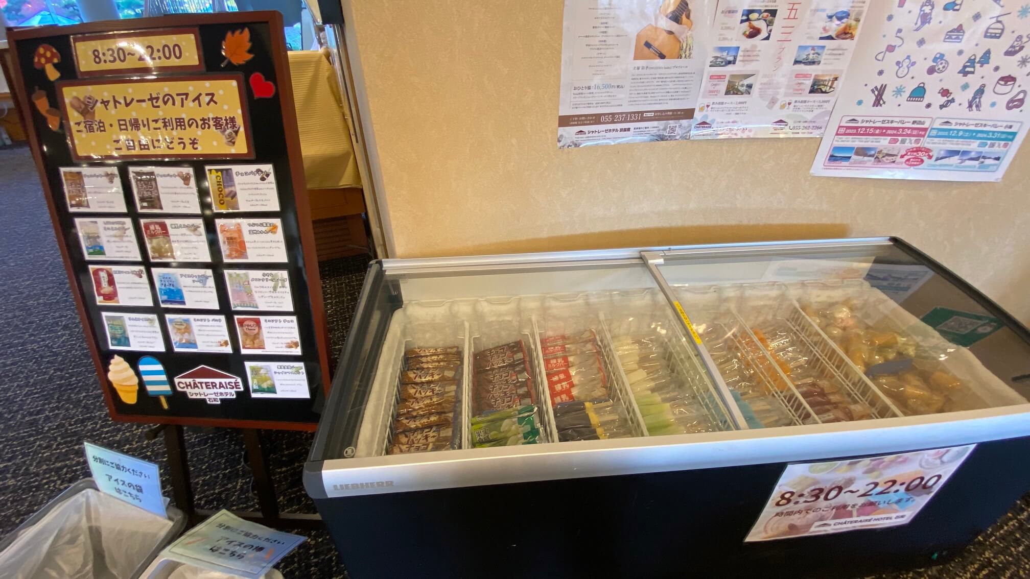 シャトレーゼホテル石和では、宿泊期間中はロビーでアイスが食べ放題です。