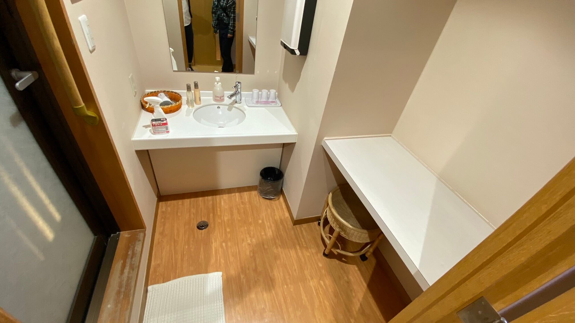 ④シャワー部屋はガラスで仕切られているので寒さを防げる