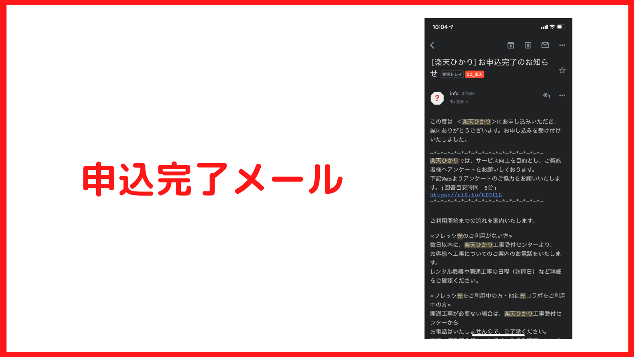 後日、楽天ひかりのオペレータと工事日程の会話をするタイミングがあるので、その中で工事費不要の調整ができます。