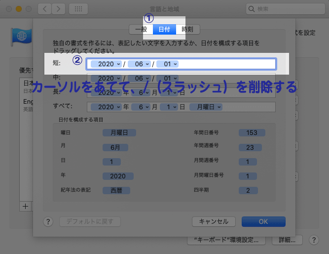 Long Dateのショートカットを起動すると「Sunday, March 22, 2020」のように英語表記になってしまいます。。