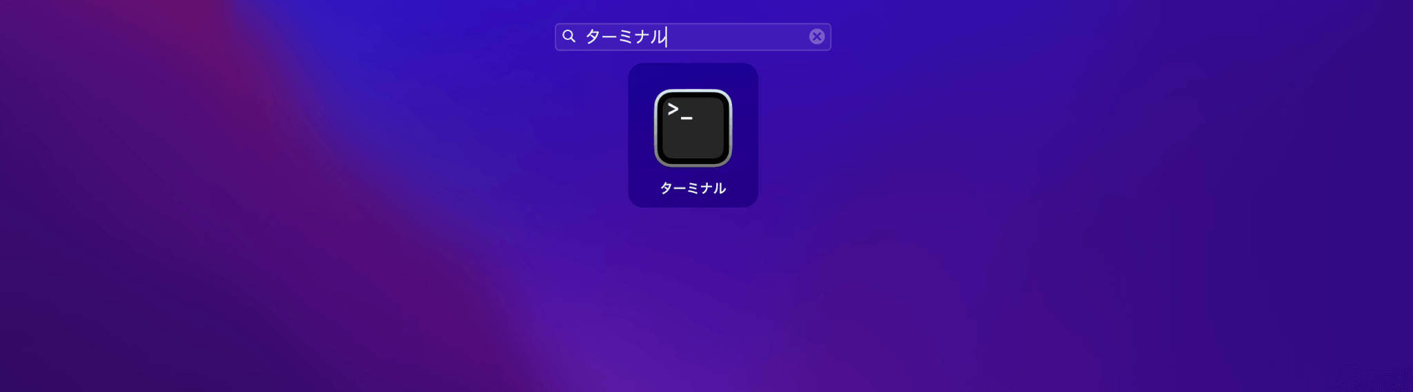 →Launchpadの検索窓に「ターミナル」と入れたら簡単に見つけ出すことが出来ます。