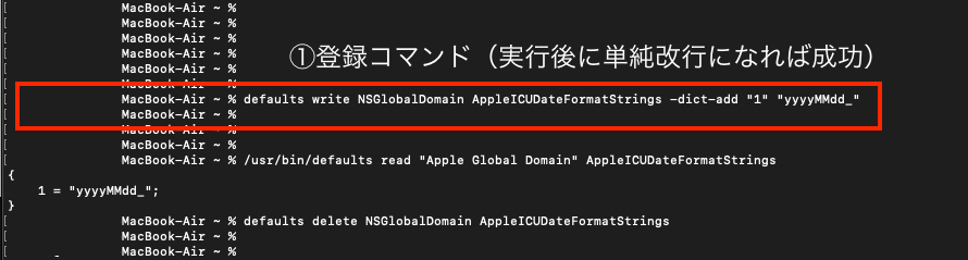 早速、ターミナルに①登録コマンドを入力してみましょう。