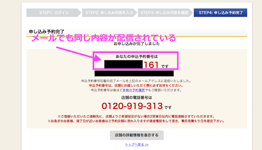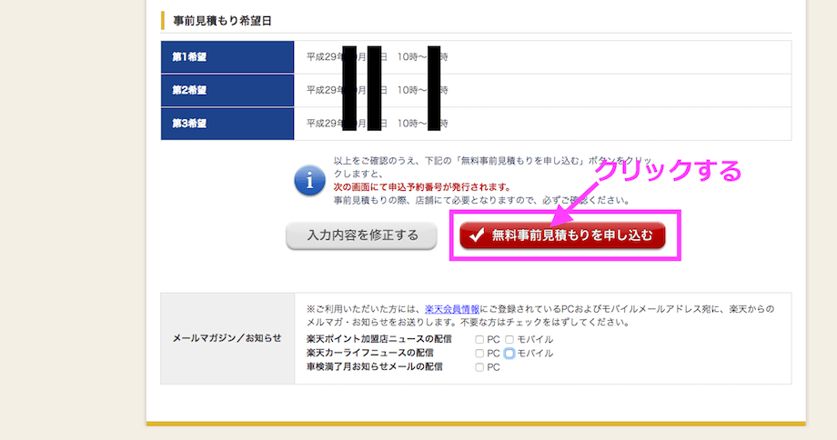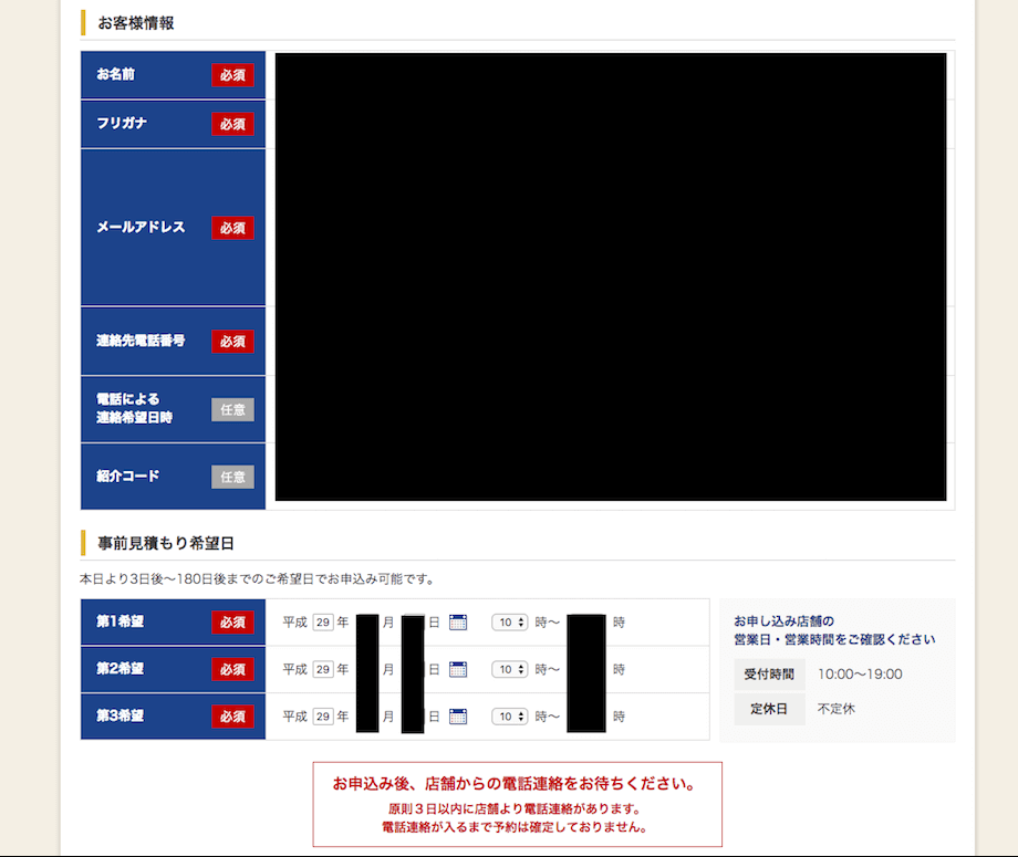 この時点では見積依頼の受付が完了しただけであって、店舗の見積予約が完了したわけではないのでご注意を。
