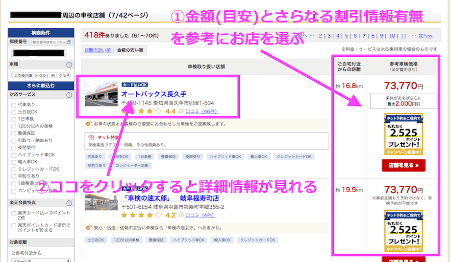 - 車検実施店舗は最安値店舗ではなく、最寄りの店舗を選ぶべし!