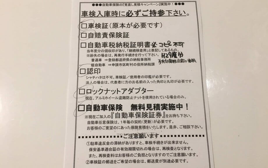 車検入庫受付時に前回の車検には無い書類が出てきました。