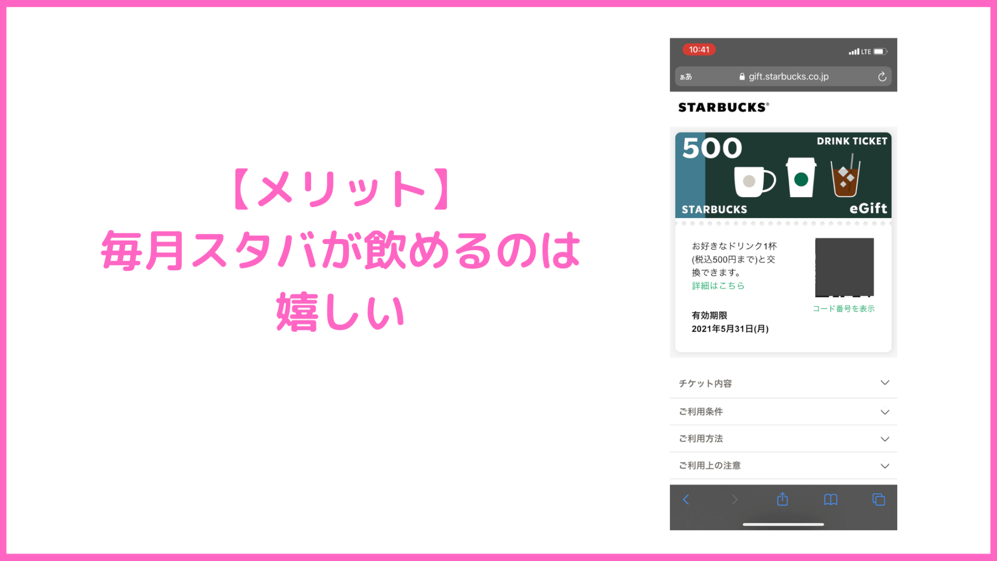【メリット】毎月スタバが飲めるのは嬉しい