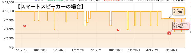 以下は皆さんの家にもあるスマートスピーカーの直近の価格です。