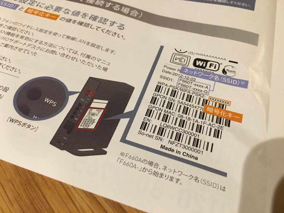 Wi-Fi接続先のSSIDと接続PWはルータ側面のラベルに記載されています。