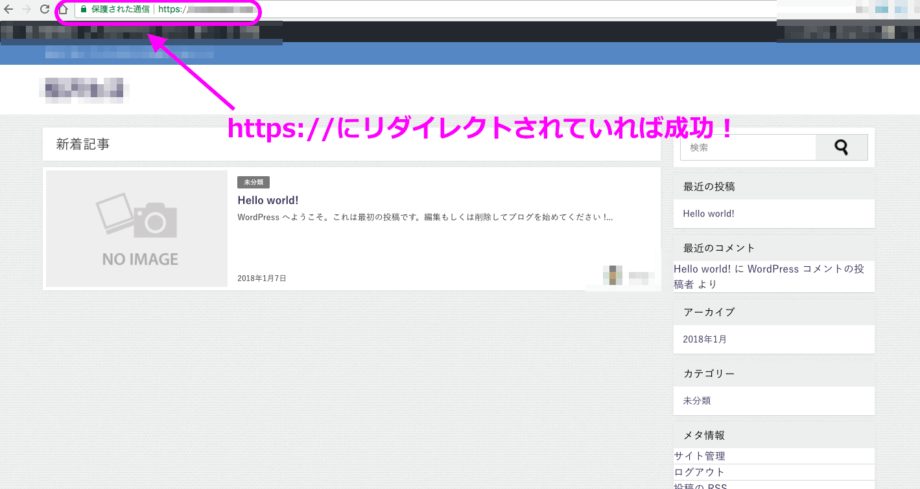 http://でアクセスすると自動的にhttps://にリダイレクトされていれば成功です!