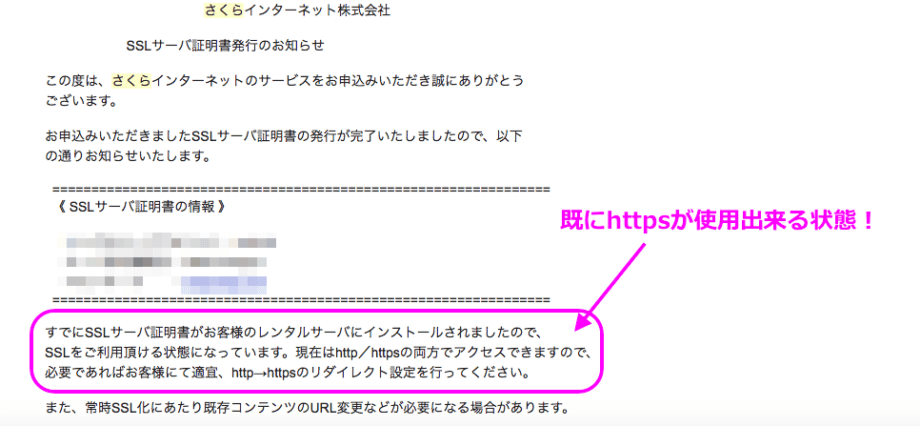 あくまでSSL証明書発行=さくらサーバ側でhttps化を行ってくれていると思えば良いです。